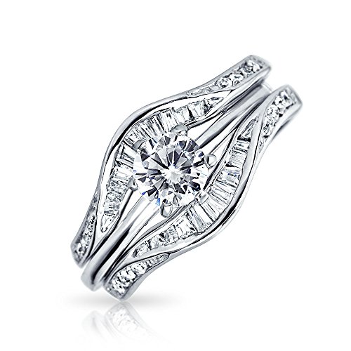 Best Seller! Bling Jewelry 925 Silver Baguette CZ Round Engagement Wedding Ring Guard Set Review