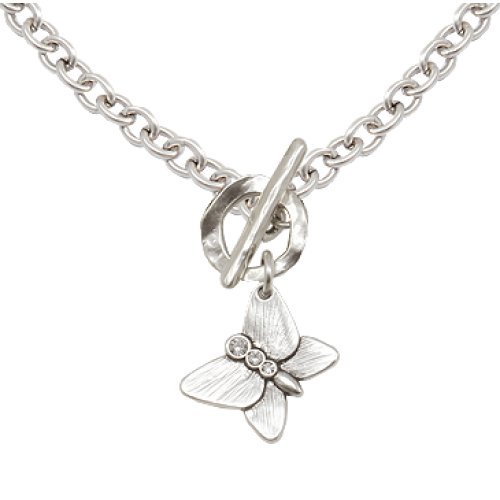The necklace is approximately 43cm in length and has a T-bar fastening for easy wear and removal. The butterfly pendant measures approximately 1.5cm by 1.5cm and features three charming Swarovski Crystals for gorgeous glamour.