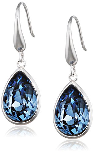 Best Seller! Elements Silver Ladies' Rhodium Plated Blue Swarovski Crystal Teardrop Hook Sterling Silver Earrings Review