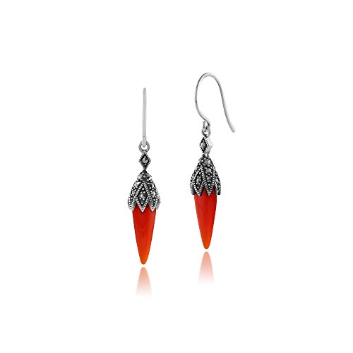 Best Seller! Gemondo 925 Sterling Silver 2ct Carnelian & Marcasite Art Deco Drop Earrings Review