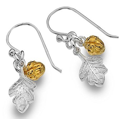 Best Seller! Sterling Silver Jewellery: Gold Detailed Acorn and Oak Leaf Earrings (E364) Review