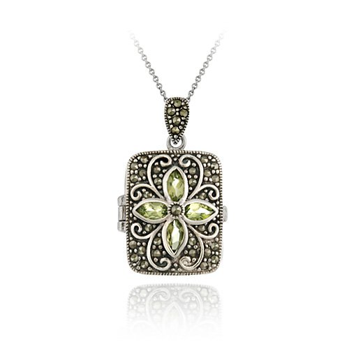 Best Seller! Sterling Silver Marcasite & Peridot Flower Locket Pendant Review
